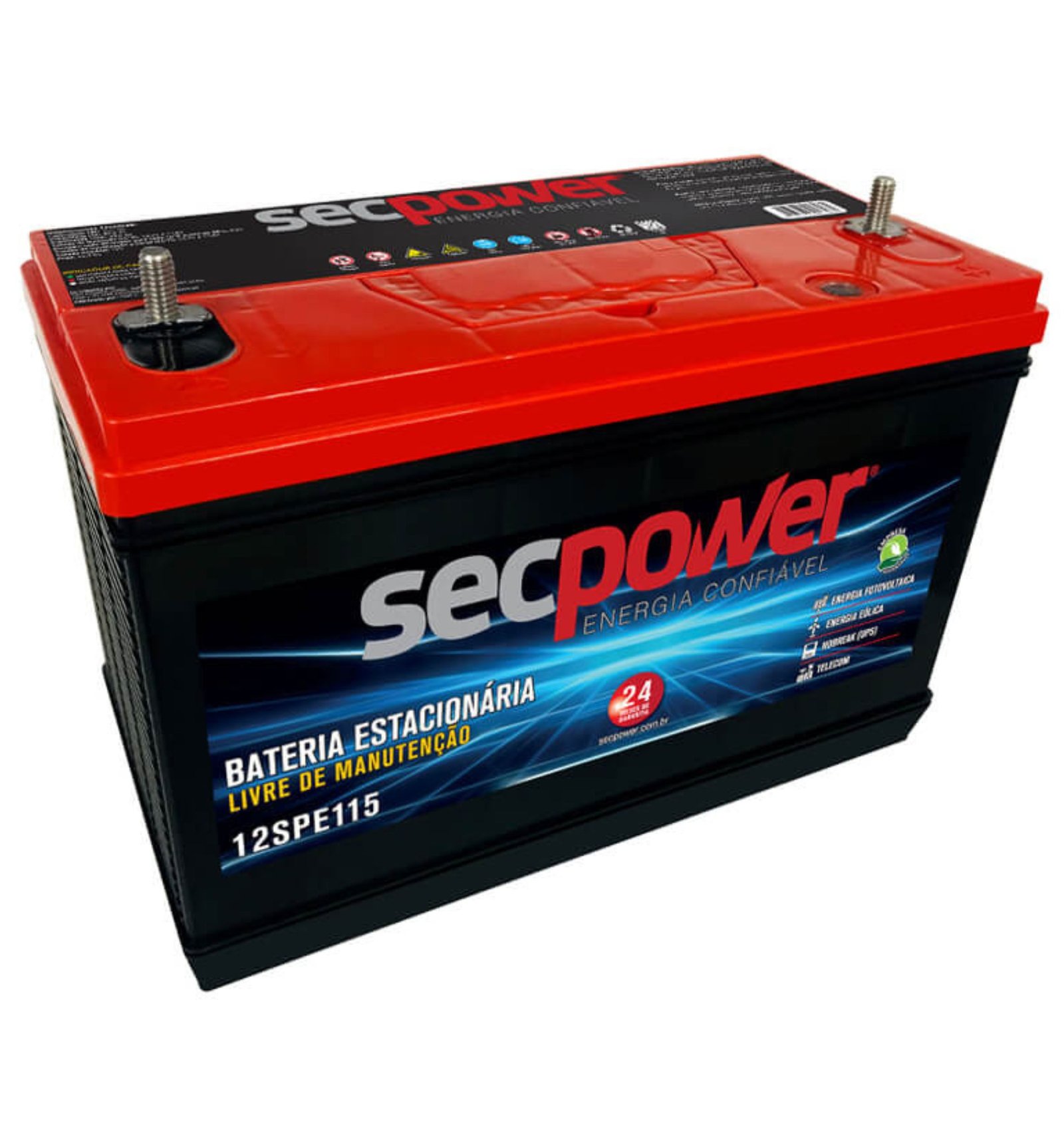 As baterias chumbo ácido estacionárias SecPower são desenvolvidas para atender os principais sistemas de backup de energia. Possuem construção de alta qualidade e não necessitam de qualquer tipo de manutenção. Ideal para aplicações e projetos de energia solar fotovoltaica, energia eólica, Nobreak (UPS) e Telecom. Projetada para sistemas que pedem grande densidade energética.