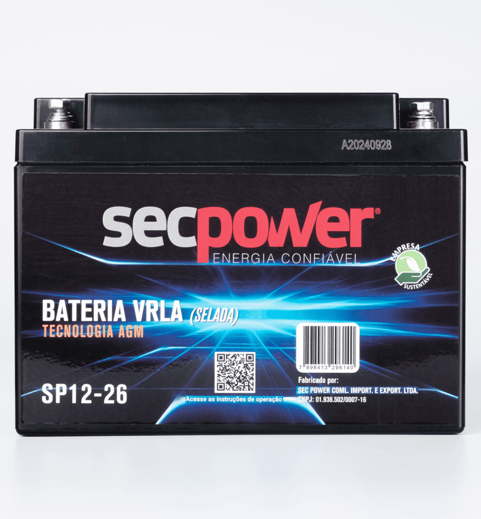 As baterias chumbo ácido VRLA AGM SecPower são desenvolvidas para atender as principais aplicações para sistemas de armazenamento. Ideal para aplicações e projetos de energia solar fotovoltaica, energia eólica, Nobreak (UPS) e Telecom. Projetada para sistemas que pedem grande densidade energética.Pode ser usada em diversas aplicações como equipamentos médicos, sistema de segurança, veículos elétricos e luz de emergência, entre outros. Baterias SecPower são desenvolvidas com alta tecnologia. Produto seguro que atende as principais normas do mercado.