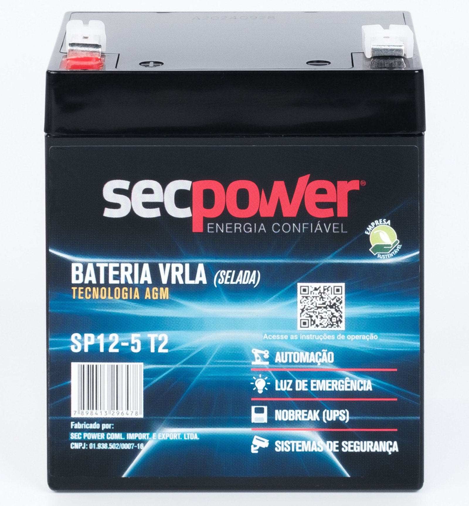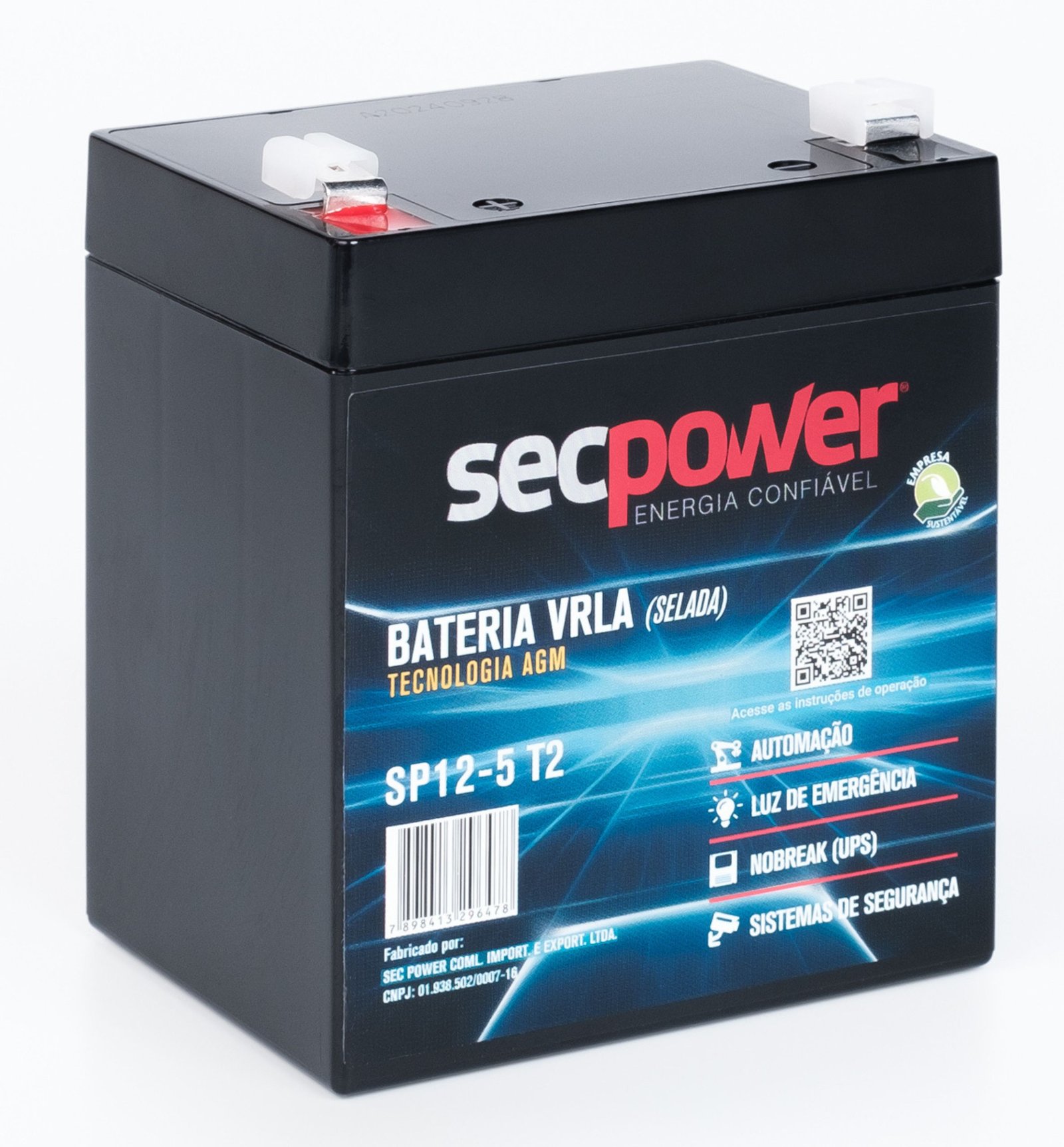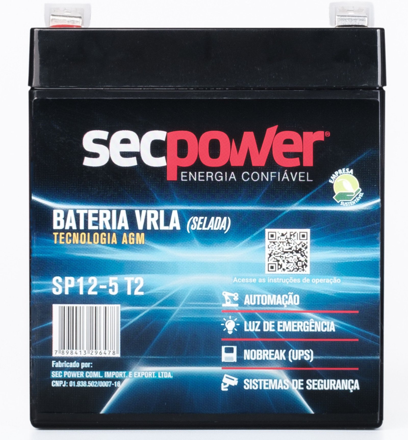 : As baterias chumbo ácido VRLA AGM SecPower são desenvolvidas para atender as principais aplicações para sistemas de armazenamento. Ideal para aplicações e projetos de energia solar fotovoltaica, energia eólica, Nobreak (UPS) e Telecom. Projetada para sistemas que pedem grande densidade energética.Pode ser usada em diversas aplicações como equipamentos médicos, sistema de segurança, veículos elétricos e luz de emergência, entre outros. Baterias SecPower são desenvolvidas com alta tecnologia. Produto seguro que atende as principais normas do mercado.
